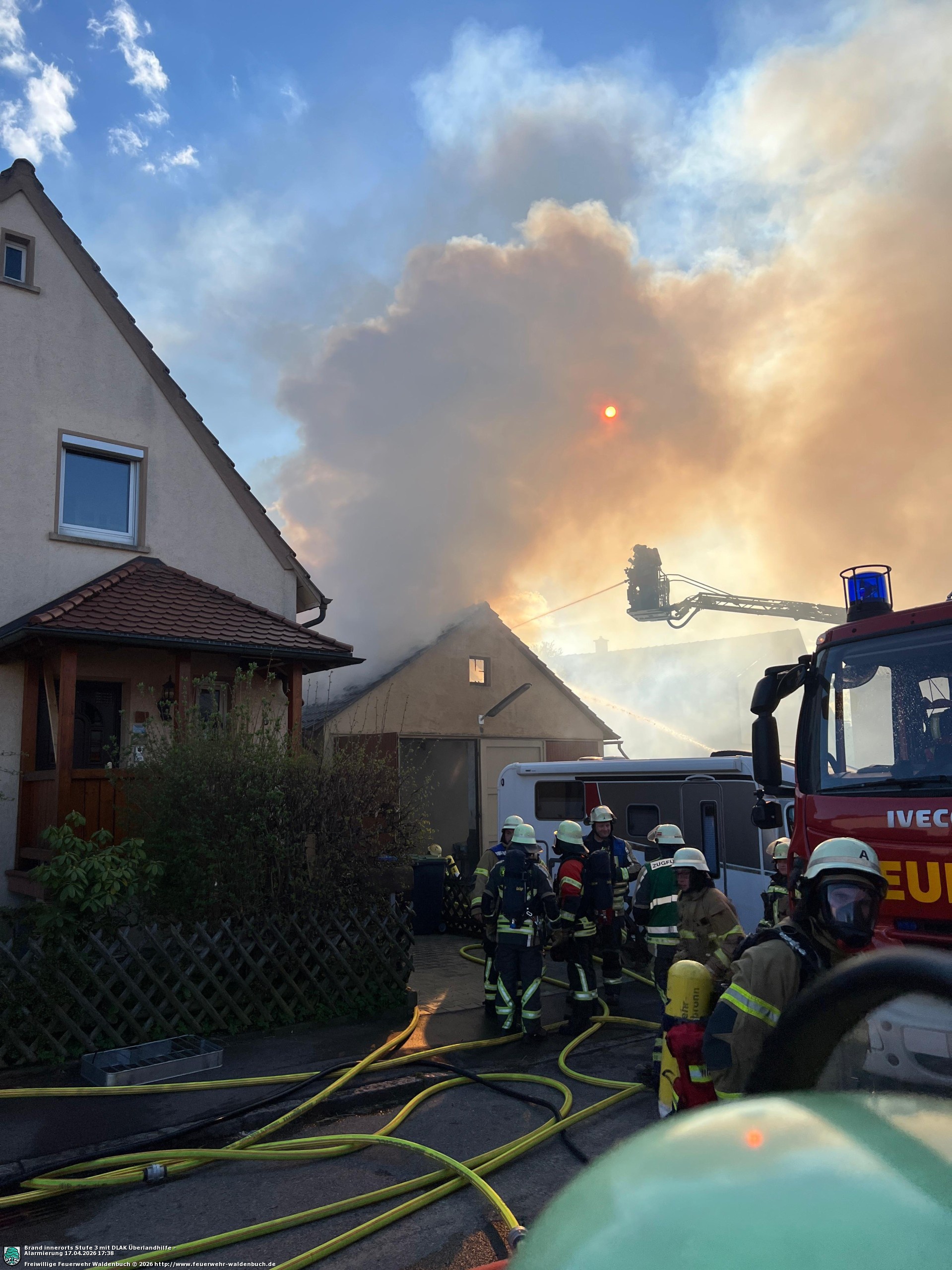 | Bericht | Die Leitstelle Böblingen alarmierte die Feuerwehr Waldenbuch zu einem gemeldeten Schuppenbrand nach Steinenbronn. Vor Ort wurden die Kräfte durch den Einsatzleiter in die Lage eingewiesen. Die DLAK wurde zur Brandbekämpfung mittels Wenderohr eingesetzt. Mehrere PA Trupps mit handgeführten Strahlrohren mit Steinenbronn und Schönaich ebenso. Quelle: SZ/BZ Steinenbronn. Ein Schuppen im Drosselweg stand am Freitagabend in Steinenbronn in Vollbrand. Die Flammen griffen nach Angaben der Feuerwehr auch auf ein benachbartes Garagengebäude über. Die Einsatzkräfte verhinderten, dass das Feuer auf ein angrenzendes Wohnhaus übergriff. Verletzt wurde niemand. Alarmiert wurden die Einsatzkräfte gegen 17.30 Uhr. Beim Eintreffen stand der Schuppen bereits vollständig in Flammen. Mit drei Löschrohren brachte die Feuerwehr den Brand unter Kontrolle. Die Nachlöscharbeiten dauerten bis etwa 20 Uhr. Im Einsatz waren die Feuerwehren aus Steinenbronn, Waldenbuch, Schönaich, Sindelfingen und Herrenberg sowie die Führungsgruppe des Landkreises Böblingen. Insgesamt rückten zwölf Fahrzeuge und rund 60 Einsatzkräfte der Feuerwehr aus. Hinzu kamen die DRK-Ortsvereine Steinenbronn und Waldenbuch mit vier Fahrzeugen und etwa zehn Kräften, der Rettungsdienst, der Organisatorische Leiter Rettungsdienst sowie die Polizei, die auch einen Hubschrauber einsetzte. Für die Bevölkerung bestand nach Angaben der Feuerwehr zu keinem Zeitpunkt Gefahr. Bilder Feuerwehr Steinenbronn: Bilder Feuerwehr Waldenbuch: |